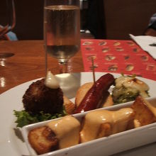 常時50種程のピンチョスがあります、私たちは半分以上制覇しましたが、ハズレはありません。すごくおいしくて安いです。8時には満席になるので、7時頃出かけると良いでしょう。