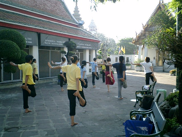ワット・ポー境内のマッサージ小屋前では、毎朝8時からヨガにも似たタイ式ストレッチ体操のルースィーダットンを体験することができます。