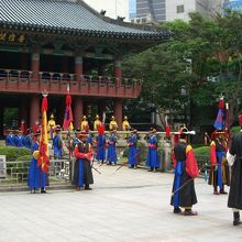 最近流行の守門将交代式を鐘路(チョンノ)普信閣で見ました。韓国の音楽とともにそれ風の衣装に身を包んだ人たちが整然と動く姿はちょっと見ものです。もちろん一緒に記念写真を撮る事もできます。http://4travel.jp/traveler/mamimama/album/10154296/