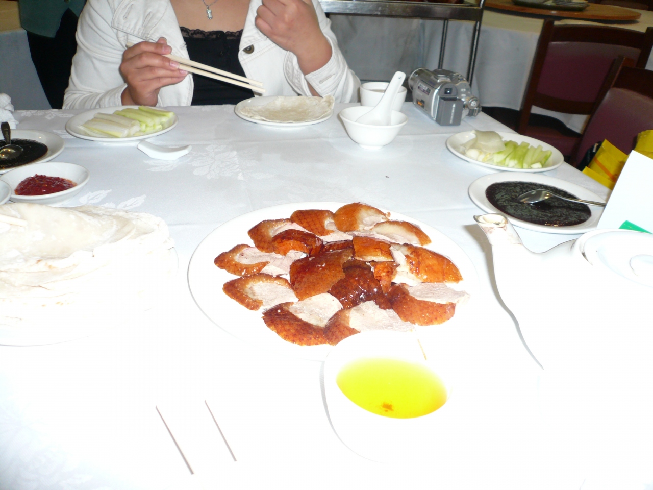 お店のお勧めは北京ダックで、どのテーブルの人もほとんど丸々頼んでいました。1羽を丸ごとテーブルの隣で切ってくれ、見た目にも楽しく、味も最高でした。北京の北京ダックは皮ばかりですが、ここは割りと肉が多くついていて、私はこっちのほうが好きでした。リーズナブルな値段でのおいしい北京ダックを食べられる、とてもお勧めのお店です!