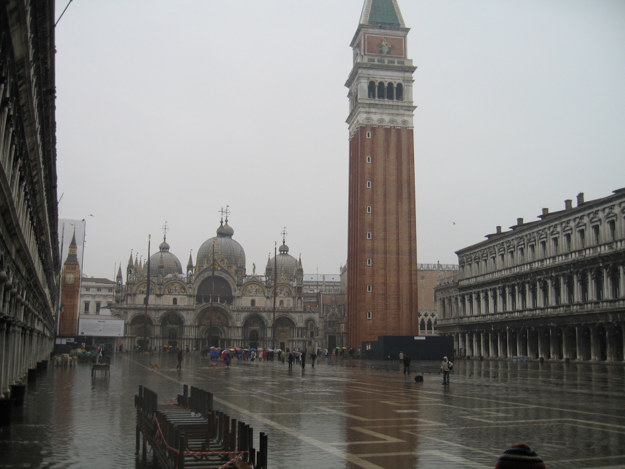 広場周囲の店の前の歩道も所々浸水しているのでご注意を。