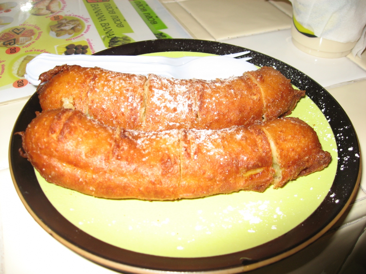 バナナを衣に包んで揚げたもの。香ばしくて美味しい。