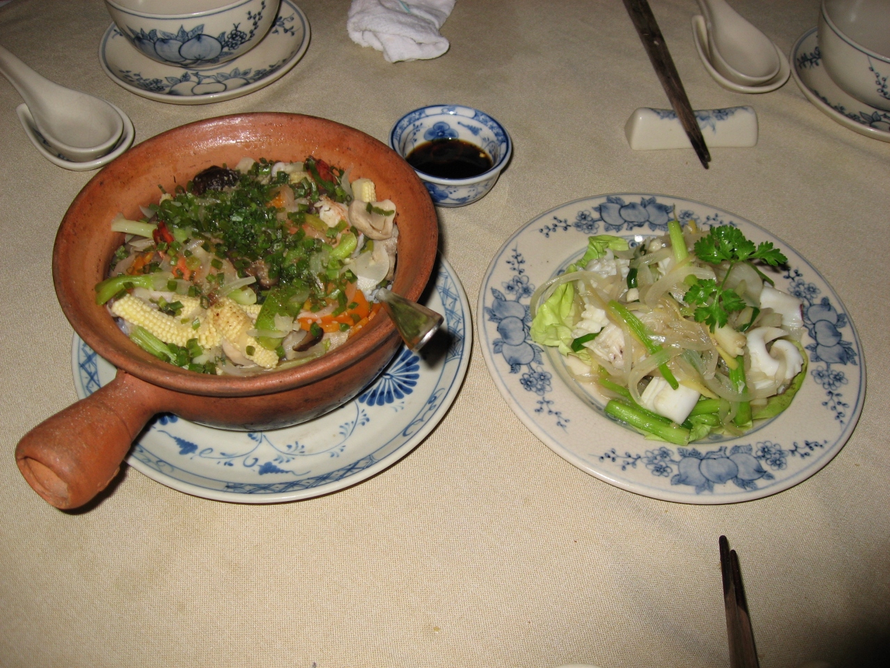 土鍋炊込み御飯は◎、イカの炒め物は○、スープは△、他は普通