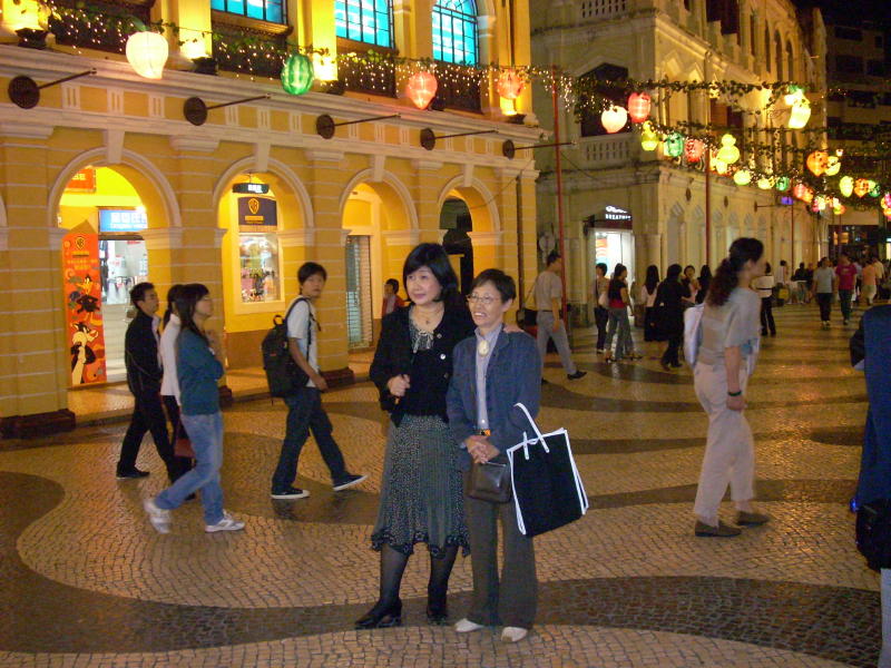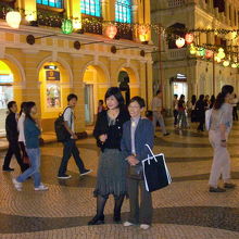 マカオ散策の中心「セナド広場」は、夜のにぎわいが一番です。