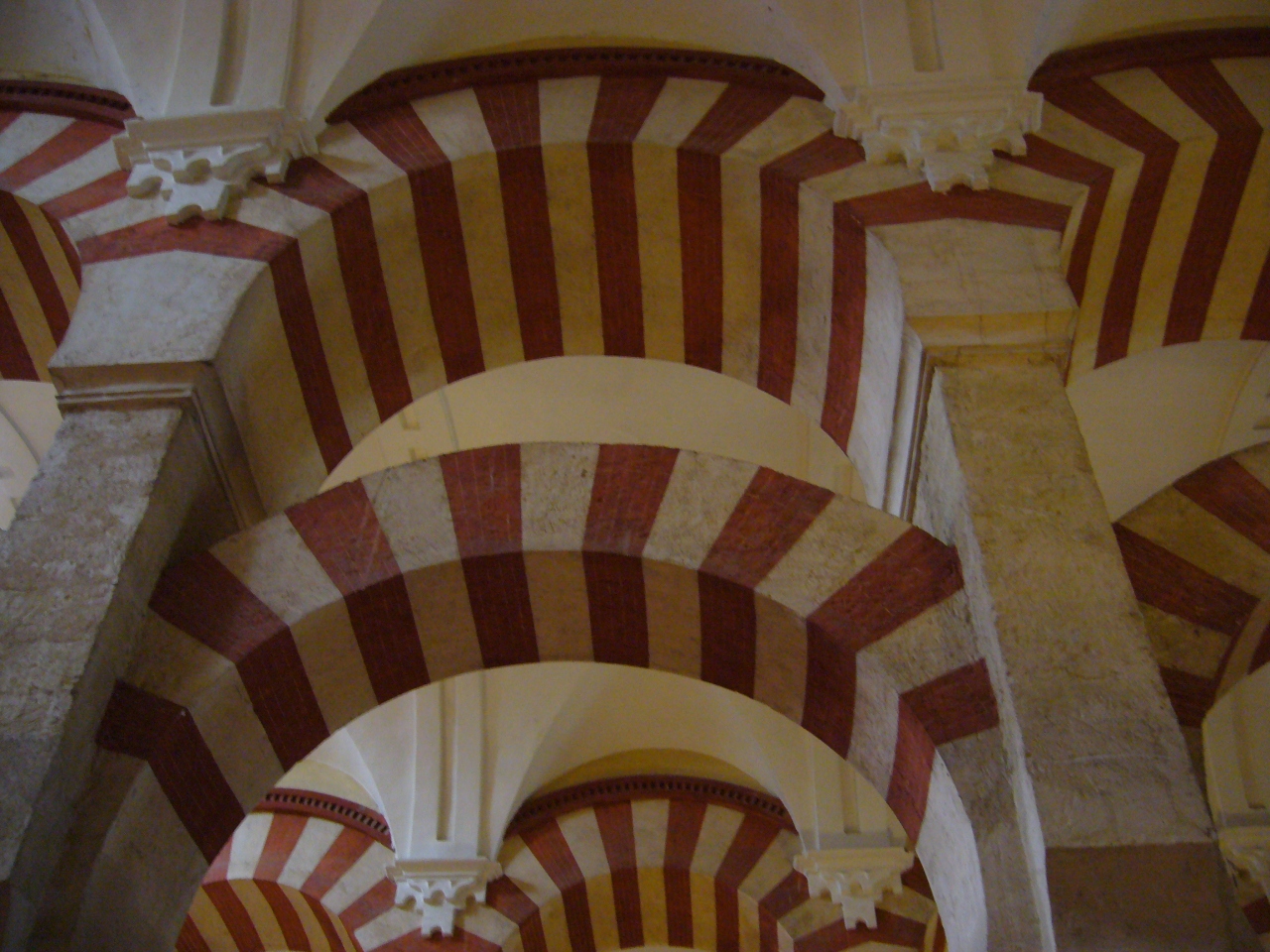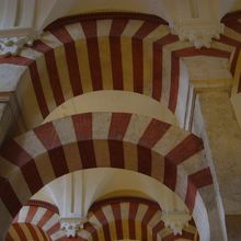 メスキータと言えば赤白模様の馬蹄型アーチ。最初に建てられた部分のアーチは赤のレンガと白い石を交互に合わせて作っていますが、拡張部分のアーチは建築にかける時間が少なかったため、白い石に赤色を塗り白線を引いただけのもので、手抜きのものであったようです。よく観ると違いがわかります(写真は手抜きの方です)。