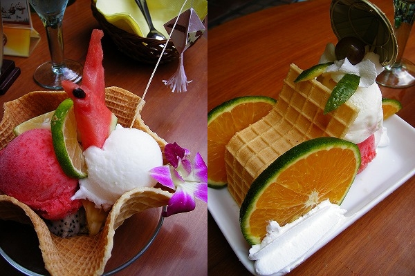 有名なのは蜂の形、シクロの形などに可愛らしくデコレーションされたアイスクリーム、シャーベットのデザートです。