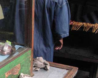 ウブド市場の肉売りばの奥を進んでいくと、サテのお店があります。(お店の看板とかはないです。)