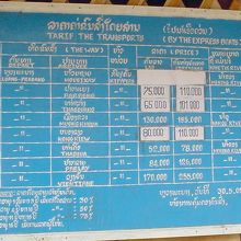 ルアンパバン⇒フエサイ方面のスローボート乗り場の運賃表