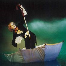 舞台上の巨大なプールは、観客が気付かぬほど静かに水深を変え、そして、一瞬にして舞台からプールが姿を消します。