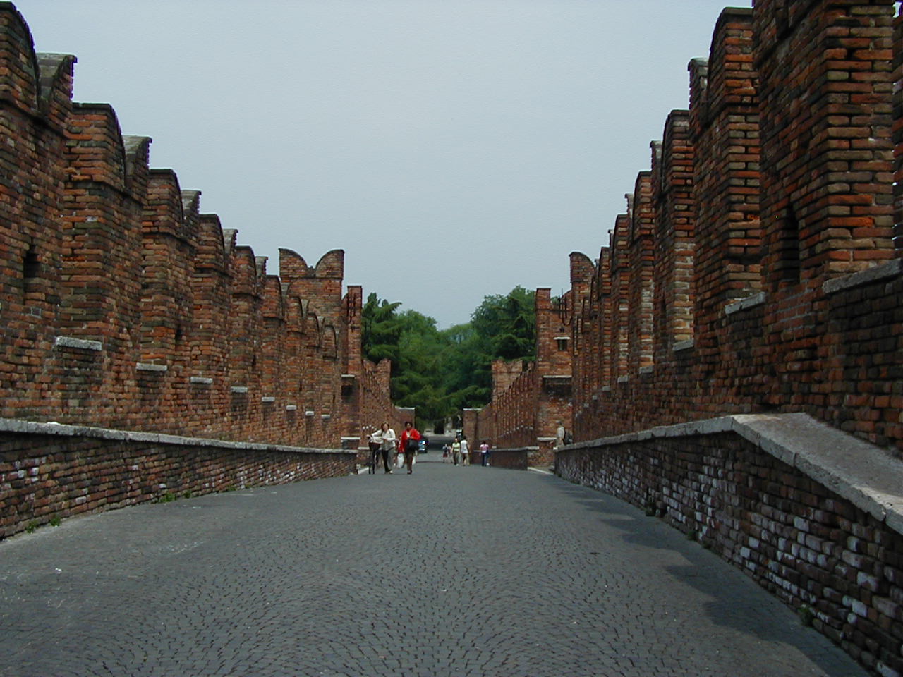 スフォルツェスコ城から伸びる長い橋が美しいです。橋も独独の様式で、欄干が高い壁のようになっていて、万里の長城を彷彿とされるフォルムです。橋の上から見える風景も綺麗で、また遠くから橋を眺めたときの景色も美しいです。