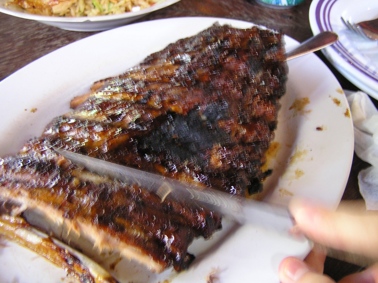 ネカ美術館のすぐ目の前のお店でヌリーズワルンは地元の人もたくさん来るスペアリブがおすすめのお店です。店先で焼いているのですぐにわかると思います。焼いている香りがたまりませ!!味は少し甘辛いにんにくケッャップ味でビンタンビールとの相性まちがいなしです。辛いのが好きな人はテーブルに置いてある調味料を付けて食べてみて!