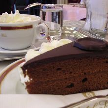 トルテの上にのっている丸いのは、まあ普通のチョコレートですが
