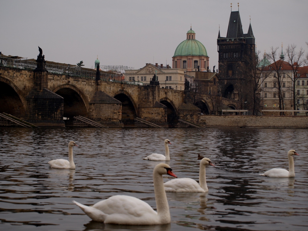 カレル橋の白鳥
