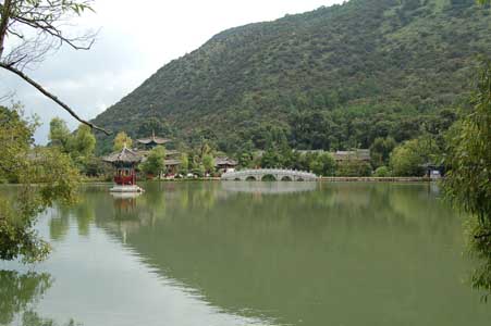 玉龍雪山から流れ出た水が溜まって、湖のようになっています。