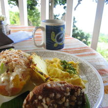 パンケーキを食べたかったがメニューにはなくちょっと残念。しかし前に座っていた白人のおじさんが奨めてくれたブレックファーストの日替わりを食べました。自家製マフィンに農園で採れたパパイヤとスクランブルエッグ。そしてコナコーヒー。たしか13$くらいかかりました。