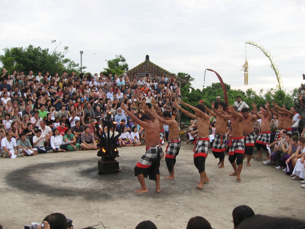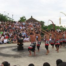 ウブドの観客には厳かな儀式を見る姿勢があったが、ここはショーを眺める雰囲気。