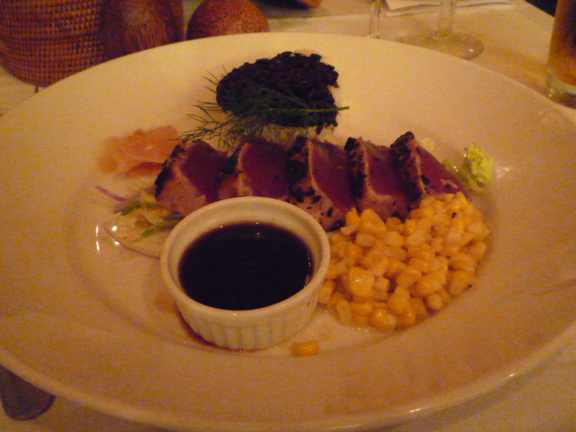 周囲の米国人の皿の肉はとても巨大でしたが、私たちが頼んだ野菜や魚の料理は手頃な量でした。