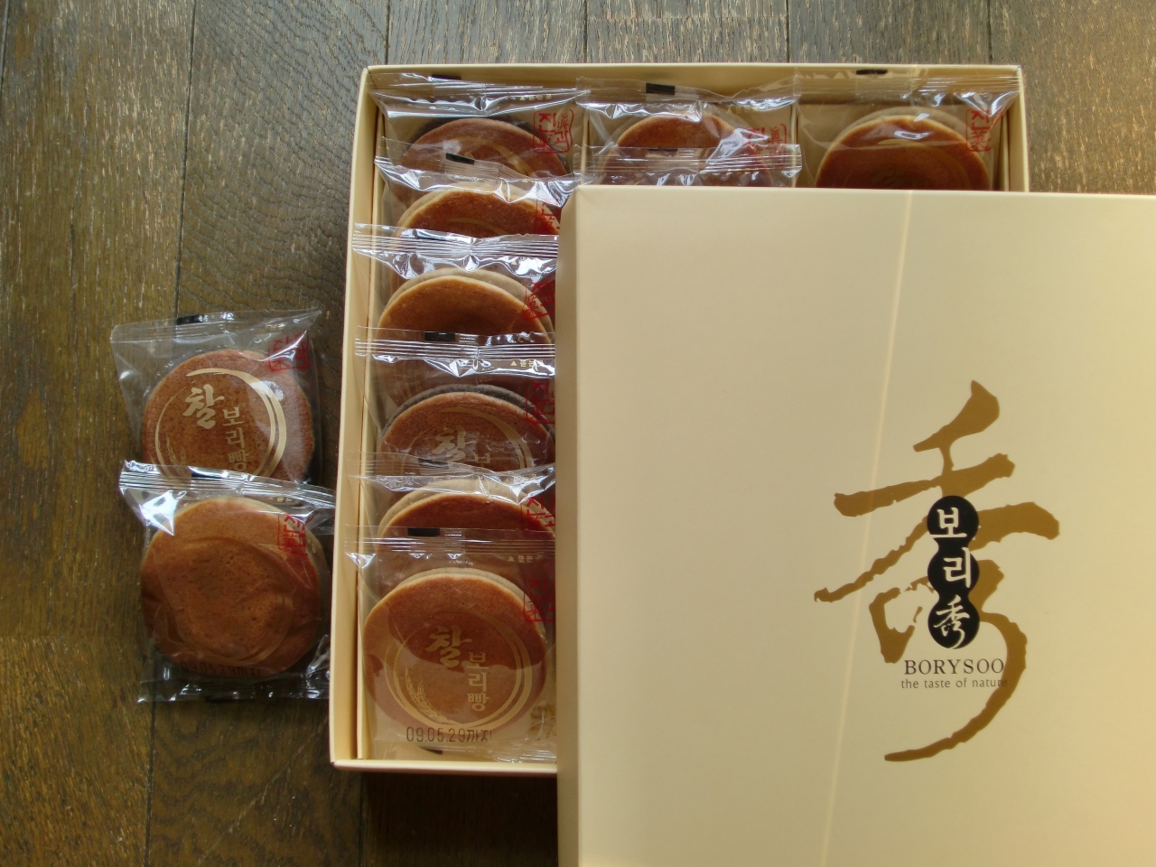 帰りの仁川空港で見つけたお菓子。ミニどら焼きみたいなお菓子であんこが、すこーしだけはさんであり、甘さ控えめ、素朴な味で、みんなにも、美味しい!と喜ばれました。20個入って1万1千Wでした。他にくるみとあんこが入った人形焼きみたいな物もありました。 私が見つけたのは30番ゲートに向かう手前、左付近です。試食させてもらえますよ!