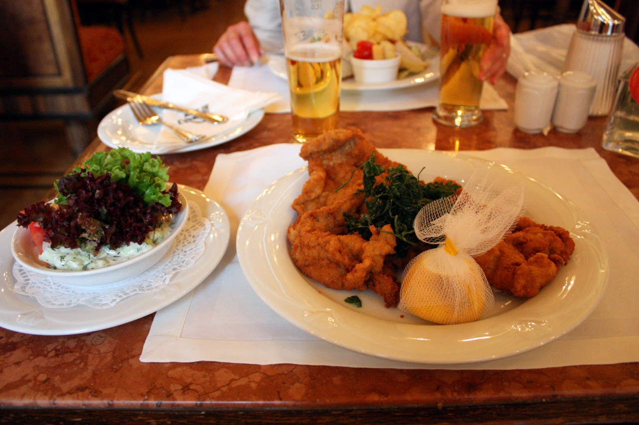 注文したのは,レバー団子入りのコンソメスープ(3.9ユーロ),ヴィーナーシュニッツェル(サラダ付き18.5ユーロ),クラブサンドウィッチ(10.8ユーロ)です。
