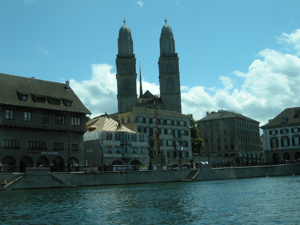 チューリヒの大聖堂の塔に登ってみよう。入口を入って右手の奥に入口があります。その手前に料金を支払うところがありますので、係の人に言ってお金を支払います。CHF2でした。