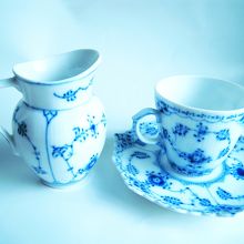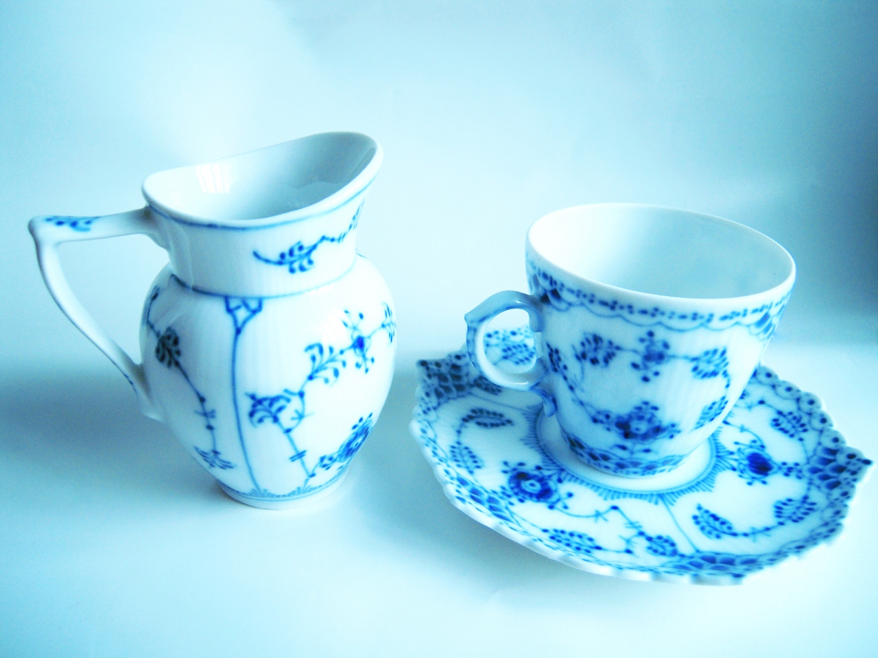 Royal Copenhagenの Blue Fluted Coffee Cup & Saucer と Cream Jug