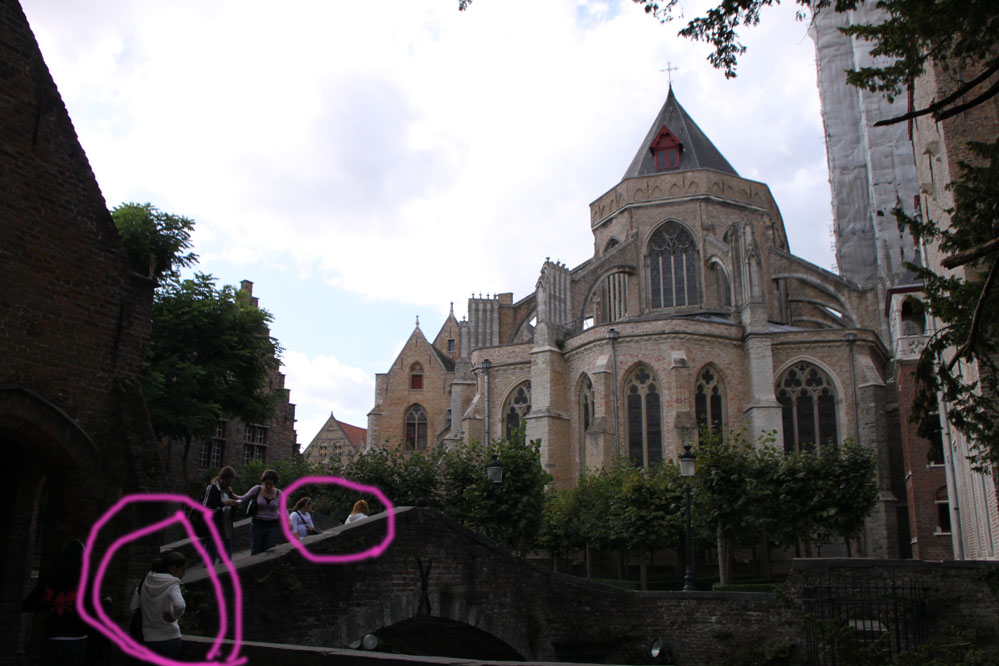 写真のような聖母教会近くの橋にグループで観光客のふりして居ます。挟んで他の観光客に悟られないように昼間でもどうどうと盗っていきますので御注意を!