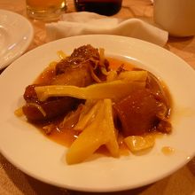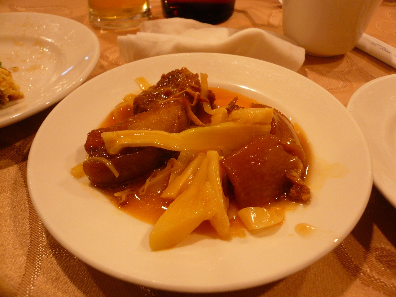 いただいたのは、写真の豚の角煮(これがトロトロでくどくなくて絶品!付け合せの筍も大変おいしゅうございました…)、