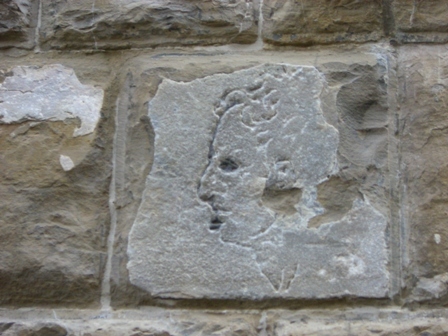 言われている・・ということだから本物かどうかはわからないのですが、宝探しみたいでちょっと楽しいですよ。ウフィッツに近い側の壁です。