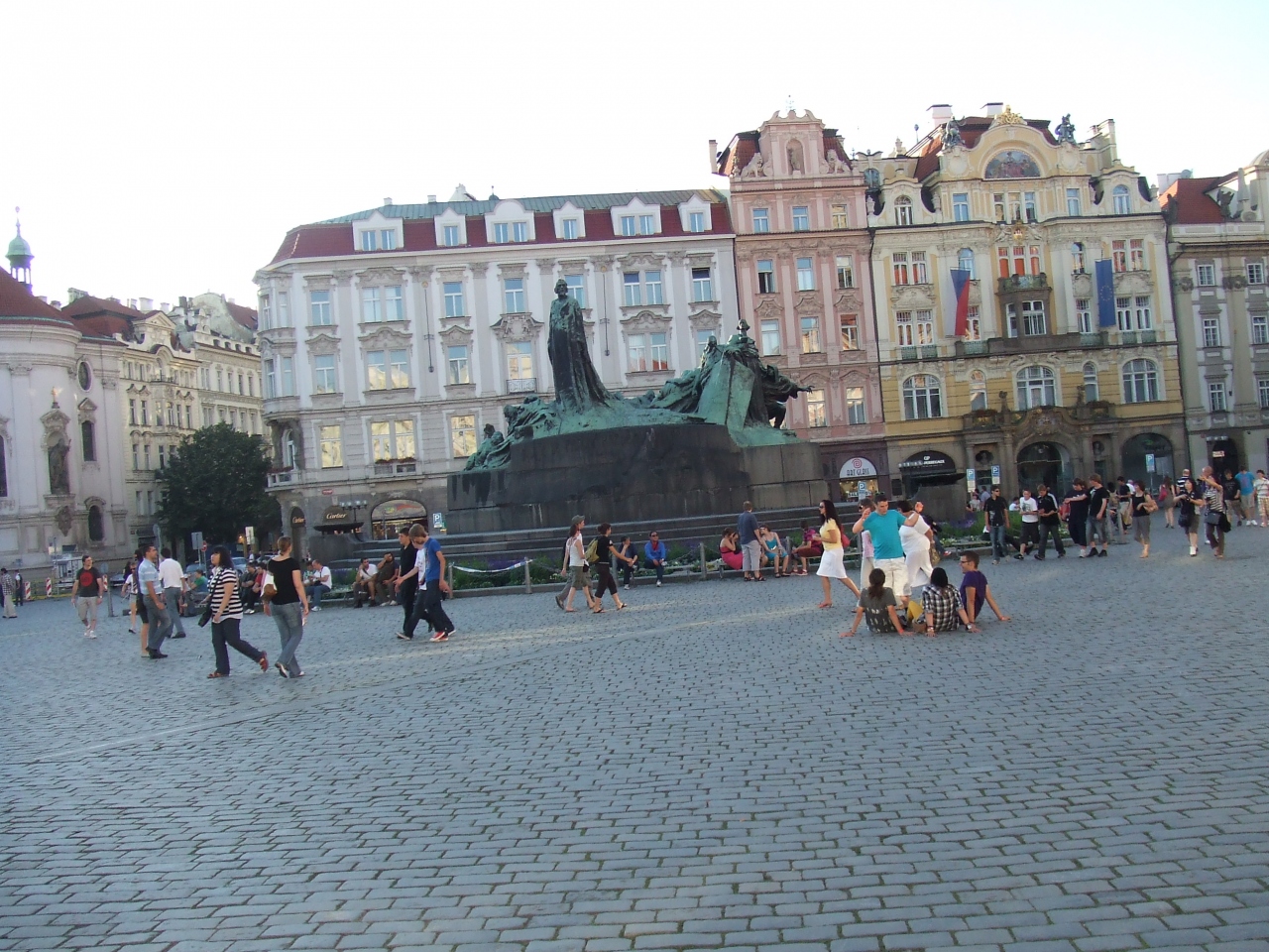 観光客や地元の人々で賑わうこの広場。旧市庁舎や教会などいくつもの異なる様式の建物に囲まれている。石畳の広場はとても広く、中心に立ってグルリと見回すと、プラハの魅力に引きずり込まれたように思わずカメラを取り出したくなります。