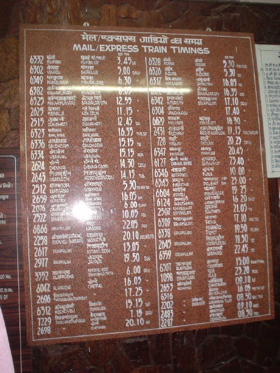 駅構内で石版に彫った時刻表を見たので掲載しときます。
