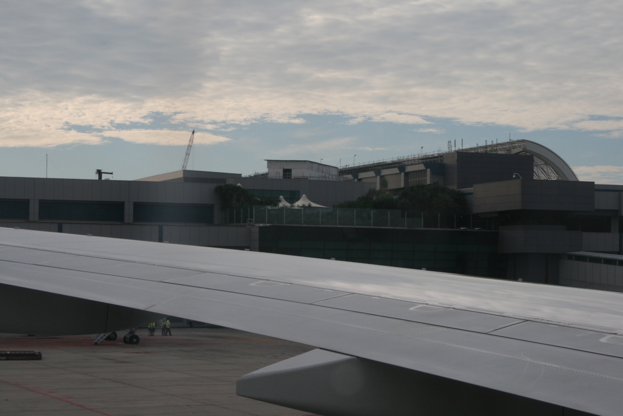 写真は、Gate20を出発し、Runway02Lに向かう機内からのものです。