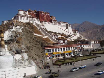 チベットの宗教と政治を司るダライ・ラマの居城。 紅山に築かれ、拉薩市内のどこからでも望むことができる。主に赤茶色の壁の「紅宮」と、白壁の「白宮」に分かれている。白い壁の塗料は、石灰石とヤクの乳を混合したもので、毎年塗り替えが行われる。入城には整理券を手に入れる必要があり、観光シーズンの場合は当日はまず手に入らない。また、チベット自治区入境に際して、ガイドを手配することになるが、併せて市内観光を手配すると、入城許可も代行してもらえる。