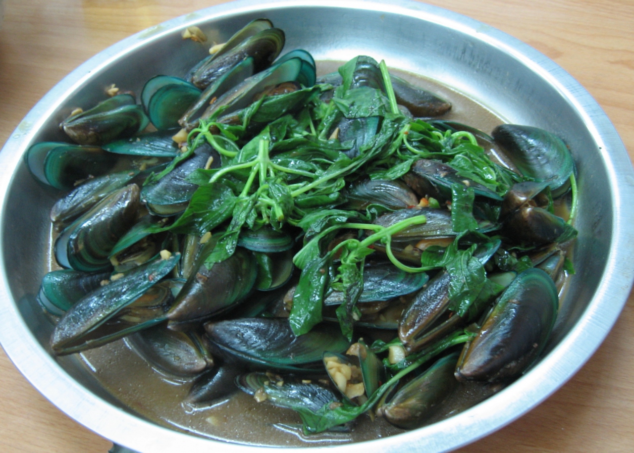 台北駅からMRTで約1時間、夕日が美しいと言われている「淡水」ですが、その日は曇り空だったので諦めて淡水河浜道路沿い息子おススメのレストラン「余家孔雀蛤大王」へ。看板商品は「招牌孔雀蛤」200元(約600円)。上に乗っている葉はちょっとクセのある強い香りのある「台湾バジル」?、慣れると「いらっしゃーい」と言う香りになる。他には空芯菜も美味しかった(所要時間約2時間)。