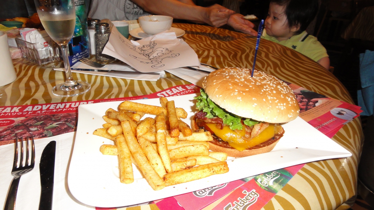 ファミレスなので特に期待もなく、お昼にビールとシャンパンとおつまみ&ハンバーガーを食べました。赤ちゃん連れだったのでウエイターさんがかわいがってくれたりベビー用にフィリピンの料理(ご飯に細い面がのってるもの)をサービスしてくれたりしました。アペタイザーが値段は安いのになかなかボリュームがありしかも美味しく、お酒をのみながらのお昼ご飯になったりします。ハンバーガーもおいしく、値段の安さと相まって非常に好印象。