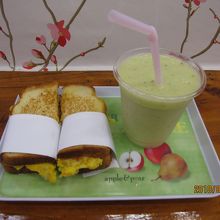 場所は国際市場近くにあります。有名なサンドイッチのお店です。写真はスペシャルサンド(2500ウォン)とミックスジュース(1500ウォン)です。スペシャルサンドの中にはハム、野菜が入った卵焼きが入っています。持ち帰りも可能で釜山を出発する日も持ち帰りのサンドイッチを買いに行きました。