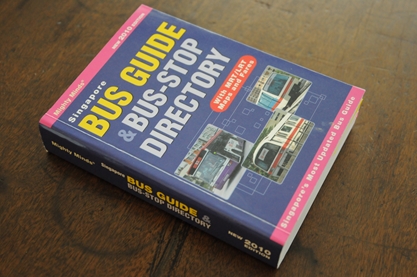 シンガポール内の移動で路線バスを活用したい方は、画像に出ているガイドブックをまず手に入れましょう。これは2010年度英語版で3・9シンガポール・ドル。書店で売っています。大きさは約14cm×10cm×2.5cm。大きさの割りに結構重さがあります。