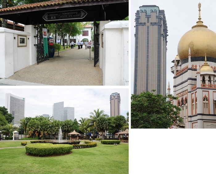 入り口あたりからは右の画像のように、スルタン・モスクとパークビュー・スクエアが一緒の都市風景も見られます。