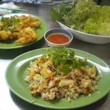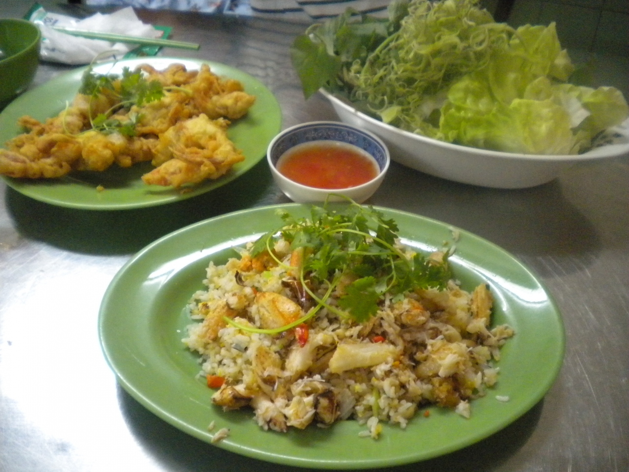地元の人たちがたくさん。蟹炒飯とソフトシェルクラブのから揚げを頼みました。2つで19万ドンくらいかな?