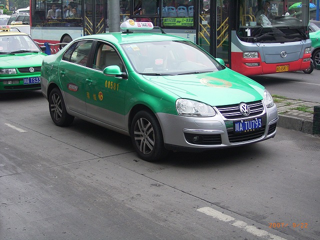 旧型タクシー(車種捷達 グリンイエロー2色塗装) 初乗り2km8元
