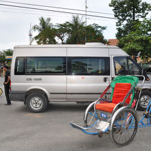 バスが停まるのは市内入り口のバスターミナルの様な場所。ホイアン布市場の前の通り、Hoang Dieu通りを北に100m程歩いた場所にあります。タクシーも多く客待ちしています。ターミナルにはチケット売り場もあります。