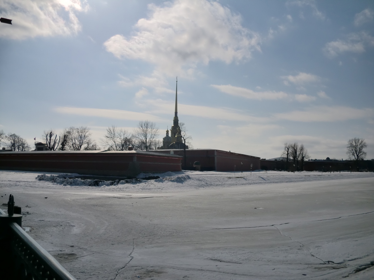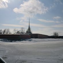冬はネヴァ川が凍って要塞まで氷の上を歩いて渡れそうな感じがします。