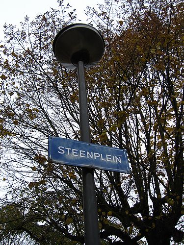 川の横に立つテーン城横はベンチが並び、黄金の木々と落ち葉で雰囲気GOOD♪
