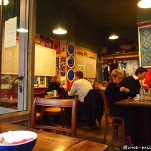 - マレっぽいカフェ。色のはげたテーブルも、皮の擦り切れたソファーも温かみを感じます。