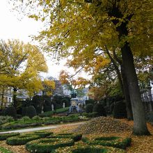落ち葉がスゴくて、植え込みの花を覆い隠す位で、