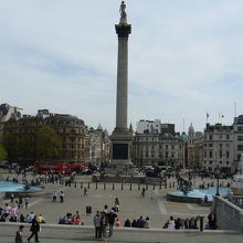 正面には4~50mの高さの円柱の上にネルソン提督の像があり、その台座の四隅を東京・三越のライオン像のモデルになった4頭のライオン像が守っています。
