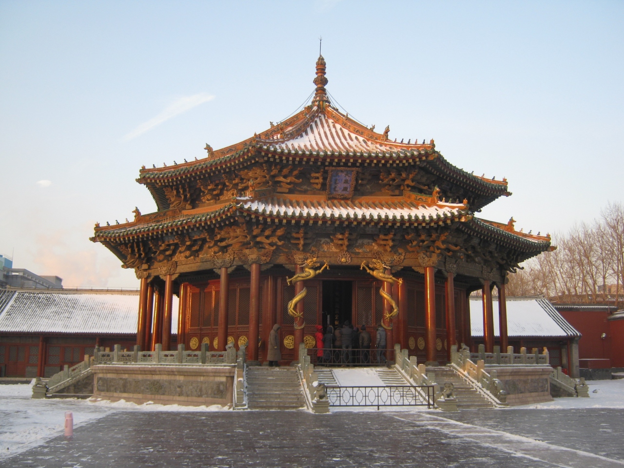 - 博物院内の広さは約6万m2程度あるため、庭園、建築物を効率的に回る必要がある。写真は故宮大政殿。この他に鳳凰楼などが建築物として有名である。