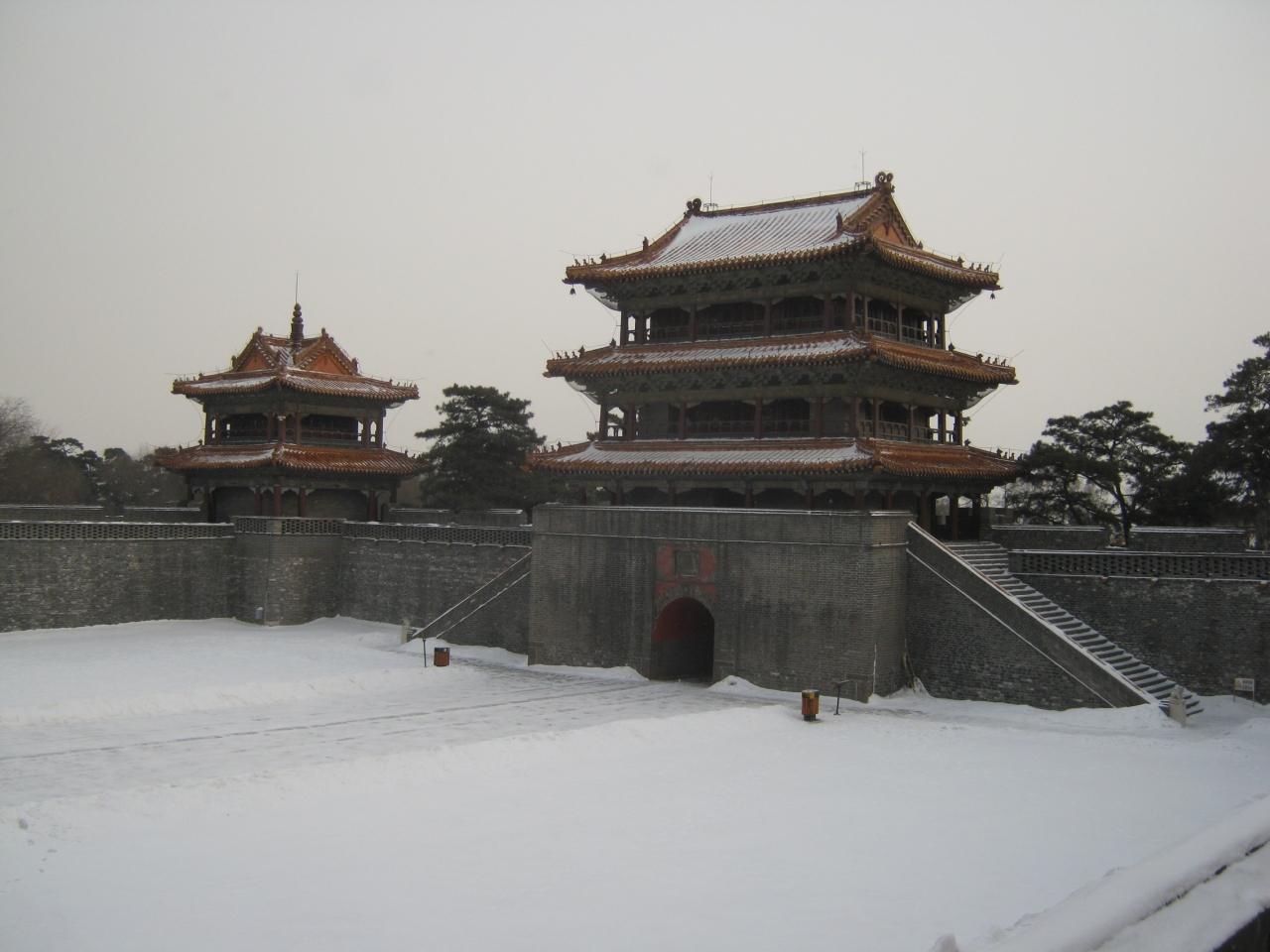 真冬に観光するには、気合と根性が必要。残念ながら、北京の明十三陵の定陵のように、陵墓の内部には入れない。福陵の展示品には、清朝の歴代の王の陵墓を紹介した写真展示があった。観光の所要時間は1時間程度あれば十分だが、瀋陽の中心地から離れているため、アクセスするのにバスなら片道1時間程度は考慮したほうがよい。