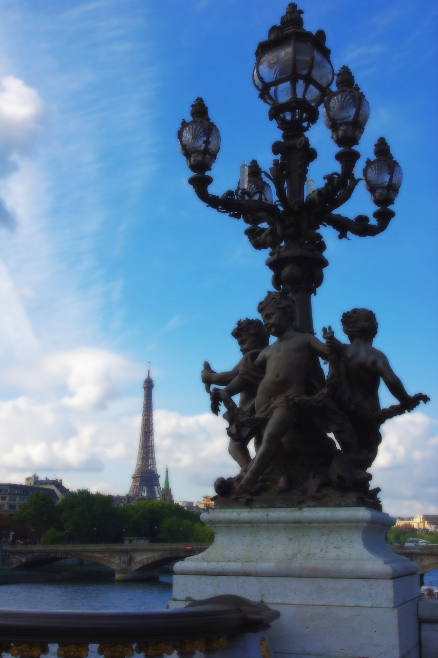 セーヌに架かる橋で一番豪華なアレクサンドル三世橋。その装飾も見事だけど、ここから見る景色はパリの魅力が詰まっている気がする。パリの象徴エッフェルを背後に見る天使達、そしてセーヌ河・・・最高♪
