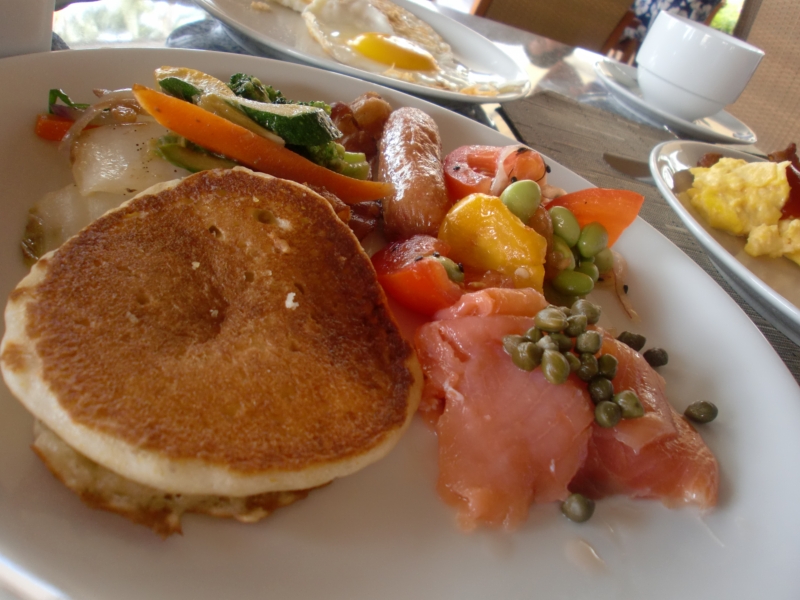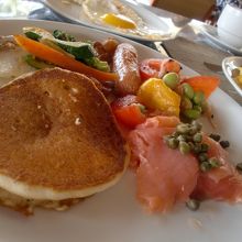 ビュッフェとはいえとても沢山の種類があります。白米もありますから朝から刺身定食をつくるのも可能。笑 オムレツはシェフが目の前で焼いてくれるので、なかにいれる具を言います。海を眺めながら頂く朝食は最高に美味しいです。