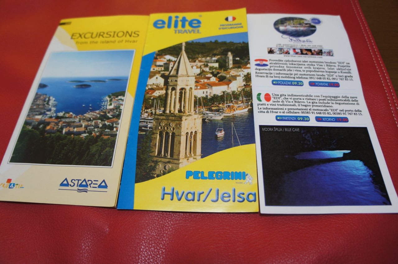 『リーバヨットハーバホテル』の前海沿いのとおりに看板立ててあり、ツアー募集している人がいました。看板には、『青の洞窟』、『ズラトニ・ラット』が書いてました。